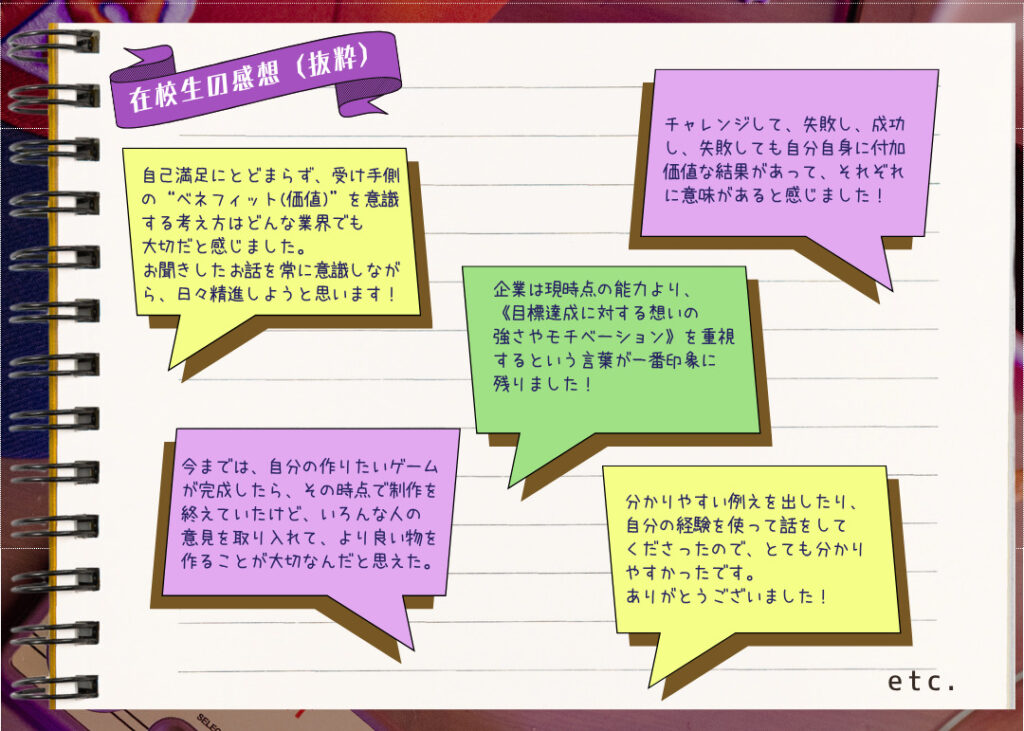 今回のセミナーが、夢と魅力あふれるゲーム業界への進路を前向きに考えるきっかけになればうれしいです😊