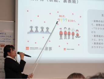 卒業年次生が取り組んだ研究成果をプレゼン形式で発表します。関連企業の方から取り組みやテーマ、実現性にいたるまで講評をいただき、社会人としての一歩を自信をもって踏み出すためのモチベーションを向上させます。